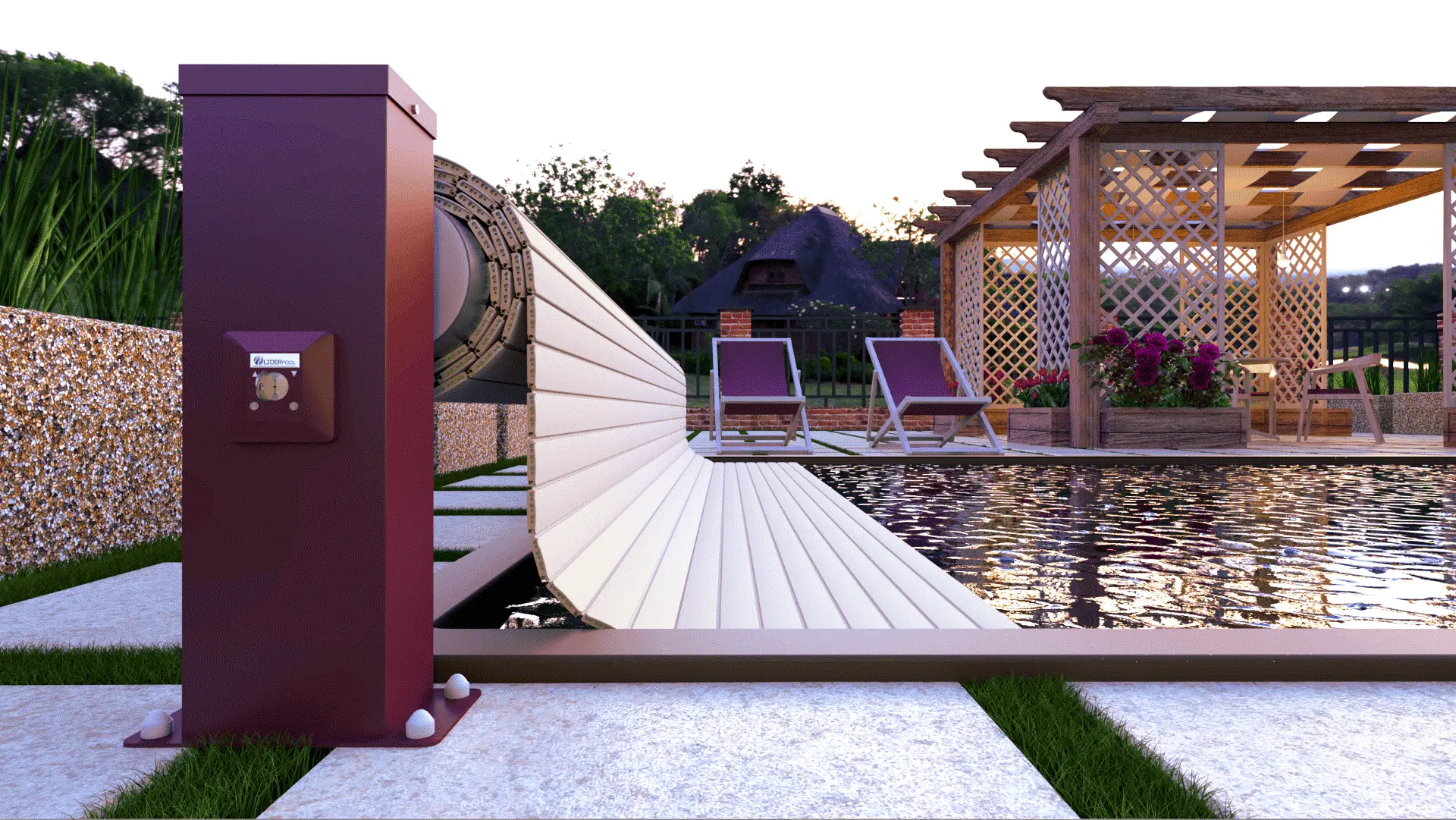 Exclusive - culoare electrolustruita, metalizata, actionare cu cheie sau cu telecomanda, arbore aluminiu, dim max piscina 10 x 5 m