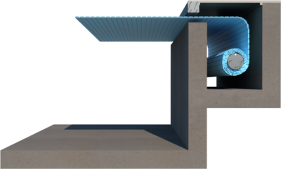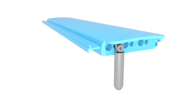 Pentru piscine cu overflow se adauga pe lateral un ghidaj cu pin sau rola la alegere