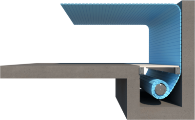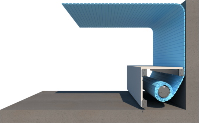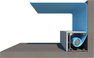 Varianta Box steel - pentru piscine ce depasesc 12 x 6 m , arbore otel, actionare cu cheie sau telecomanda, sistem modular cu clik pentru finisajul cutiei, finisaj la alegerea clientului