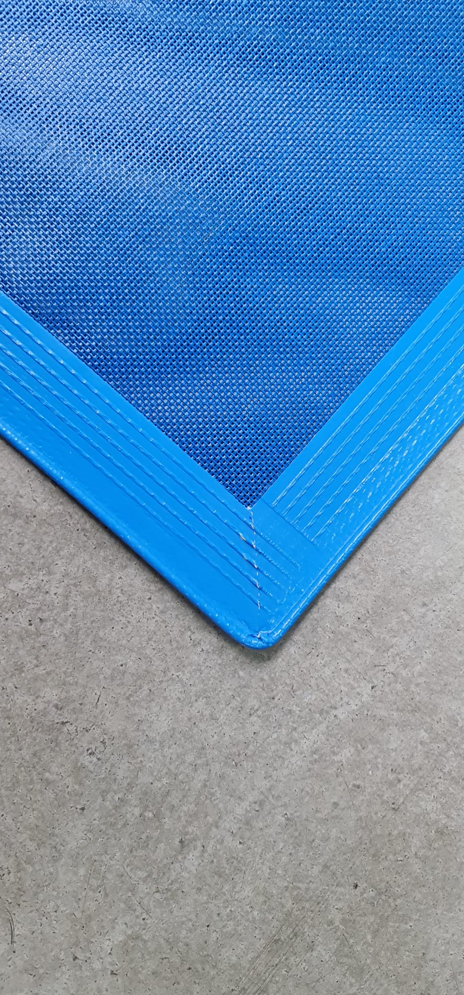 - Marginea plasei este finisată prin suprapunere sudată sau keder lateral, în funcție de modelul selectat, datorită tehnologiei de sudură de înaltă frecvență